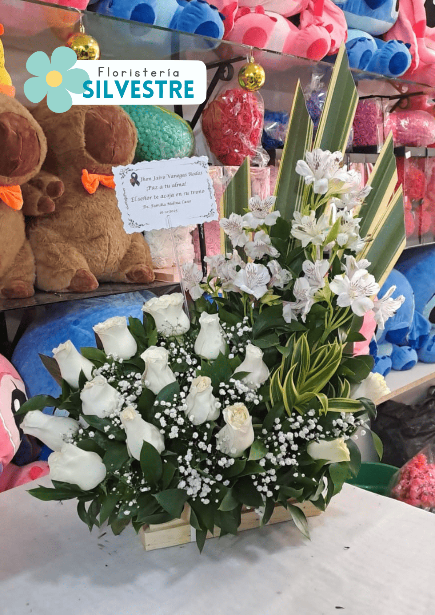 Arreglo Fúnebre Rosas Blancas y Lirios