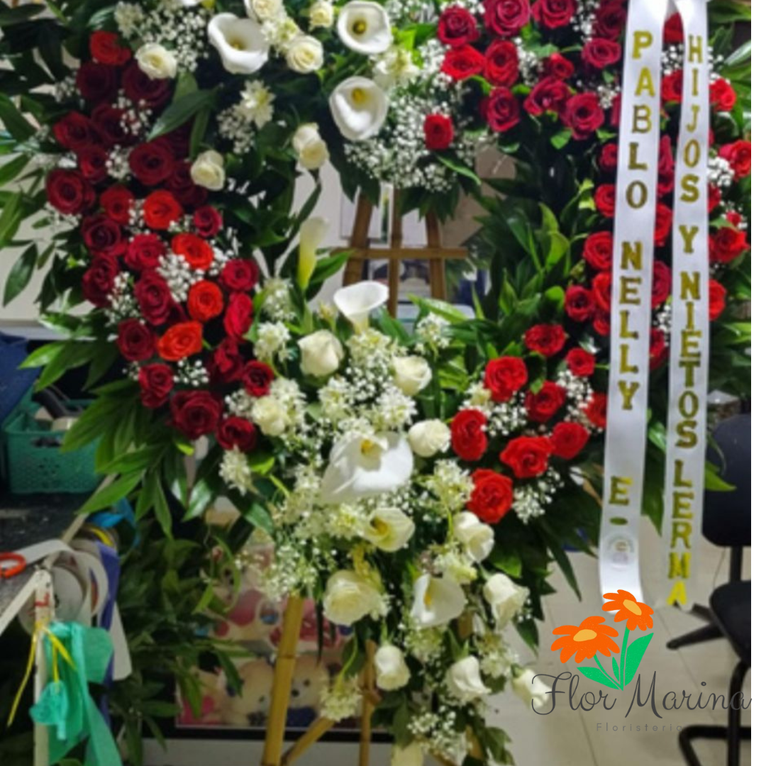 En este momento de duelo es difícil expresar con palabras un mensaje de condolencias, las flores te permiten llevar ese mensaje de aliento y paz a los familiares de ese ser que ha partido, envía este lindo diseño floral que está elaborado sobre una base de madera y se compone de rosas blancas, lirios, margaritas y follajes verdes.